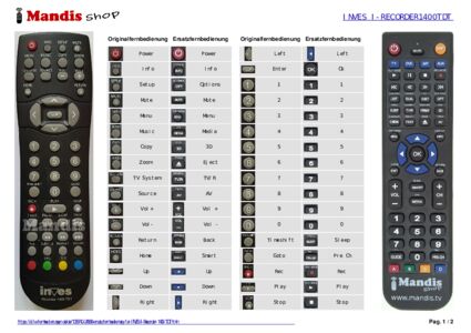 Diese Fernbedienung ersetzt Ihre I-Recorder 1400 TDT in vollem Umfang und bietet alle Funktionen des Originals.