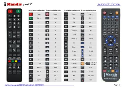 Ein Dokument ist enthalten, um die Verwendung der neuen Fernbedienung zu erleichtern, indem es die Tastenbelegung zeigt.