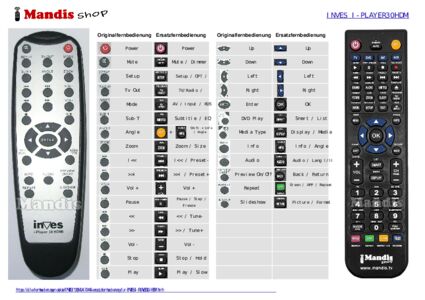 Diese Fernbedienung ersetzt Ihre I-PLAYER30 HDMI in vollem Umfang und bietet alle Funktionen des Originals.
