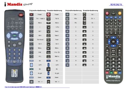 Diese Fernbedienung ersetzt Ihre REMCON278 in vollem Umfang und bietet alle Funktionen des Originals.