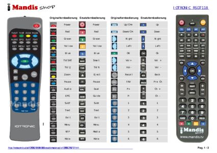Ein Dokument ist enthalten, um die Verwendung der neuen Fernbedienung zu erleichtern, indem es die Tastenbelegung zeigt.