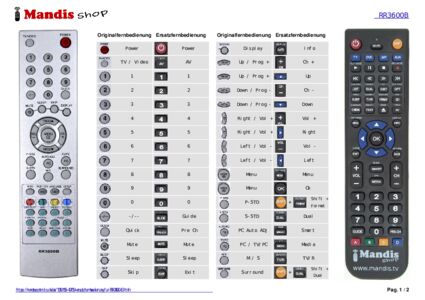 Ein Dokument ist enthalten, um die Verwendung der neuen Fernbedienung zu erleichtern, indem es die Tastenbelegung zeigt.