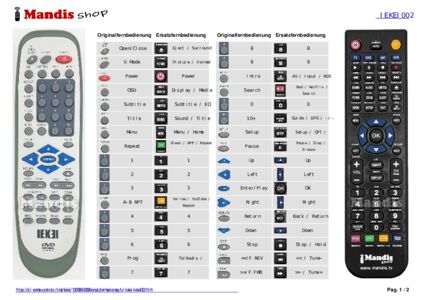 Ein Dokument ist enthalten, um die Verwendung der neuen Fernbedienung zu erleichtern, indem es die Tastenbelegung zeigt.