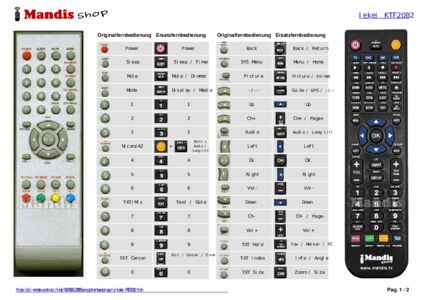 Home > Marken > Fernbedienungen Iekei > Fernbedienung für Iekei KTF 20 B 2