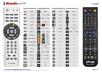 Ein Dokument ist enthalten, um die Verwendung der neuen Fernbedienung zu erleichtern, indem es die Tastenbelegung zeigt.