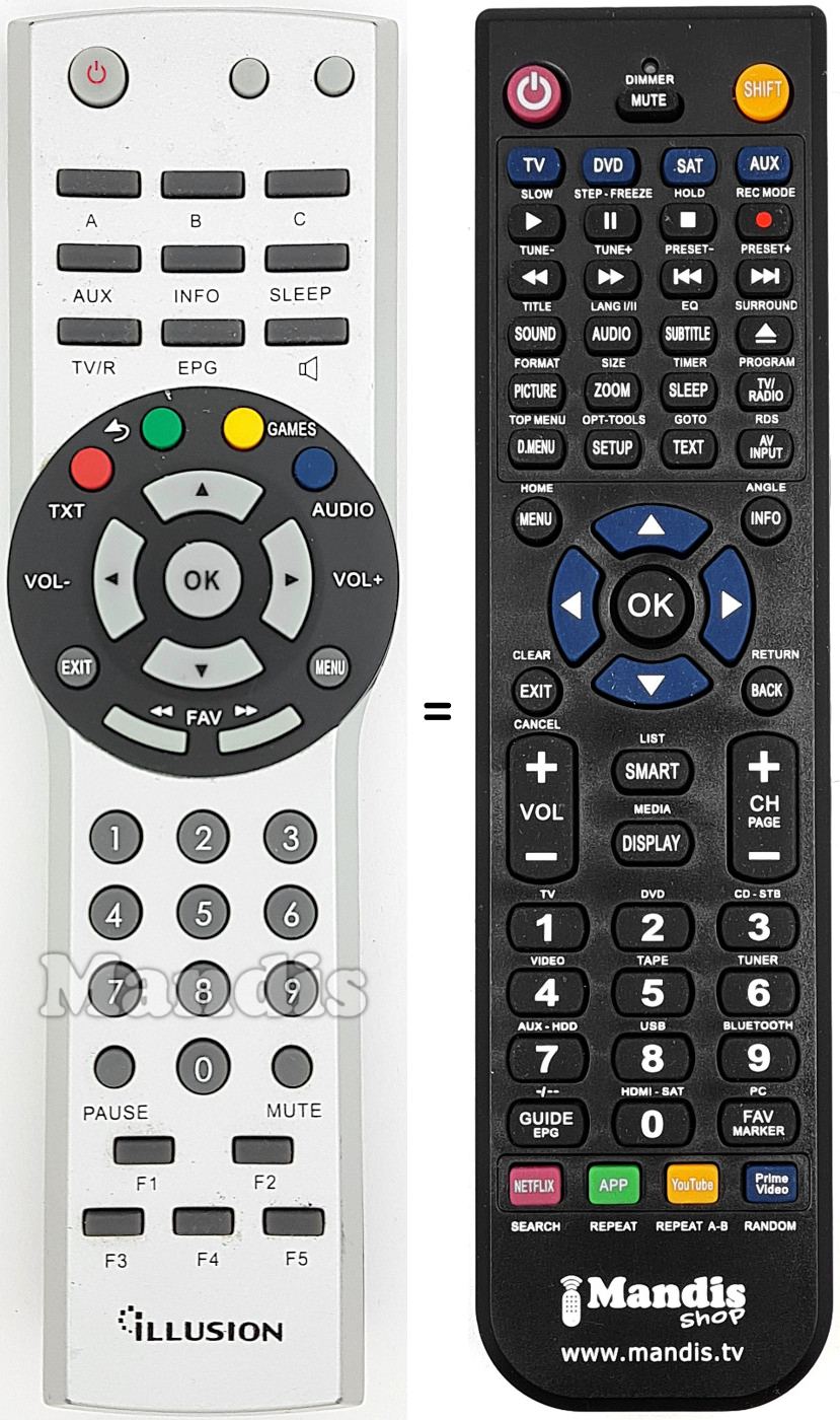 Es handelt sich jedoch nicht um eine Universalfernbedienung sondern um eine Fernbedienung die das Original ersetzt.