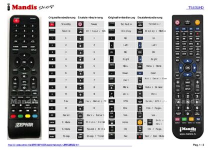 Ein Dokument ist enthalten, um die Verwendung der neuen Fernbedienung zu erleichtern, indem es die Tastenbelegung zeigt.