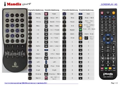 Ein Dokument ist enthalten, um die Verwendung der neuen Fernbedienung zu erleichtern, indem es die Tastenbelegung zeigt.