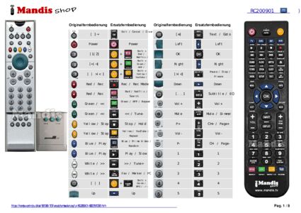 Ein Dokument ist enthalten, um die Verwendung der neuen Fernbedienung zu erleichtern, indem es die Tastenbelegung zeigt.