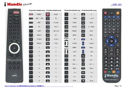 Ein Dokument ist enthalten, um die Verwendung der neuen Fernbedienung zu erleichtern, indem es die Tastenbelegung zeigt.