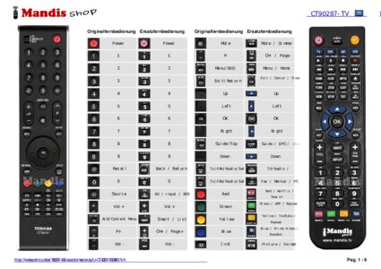 Diese Fernbedienung ersetzt Ihre CT-90287 [TV+REGZA] in vollem Umfang und bietet alle Funktionen des Originals.