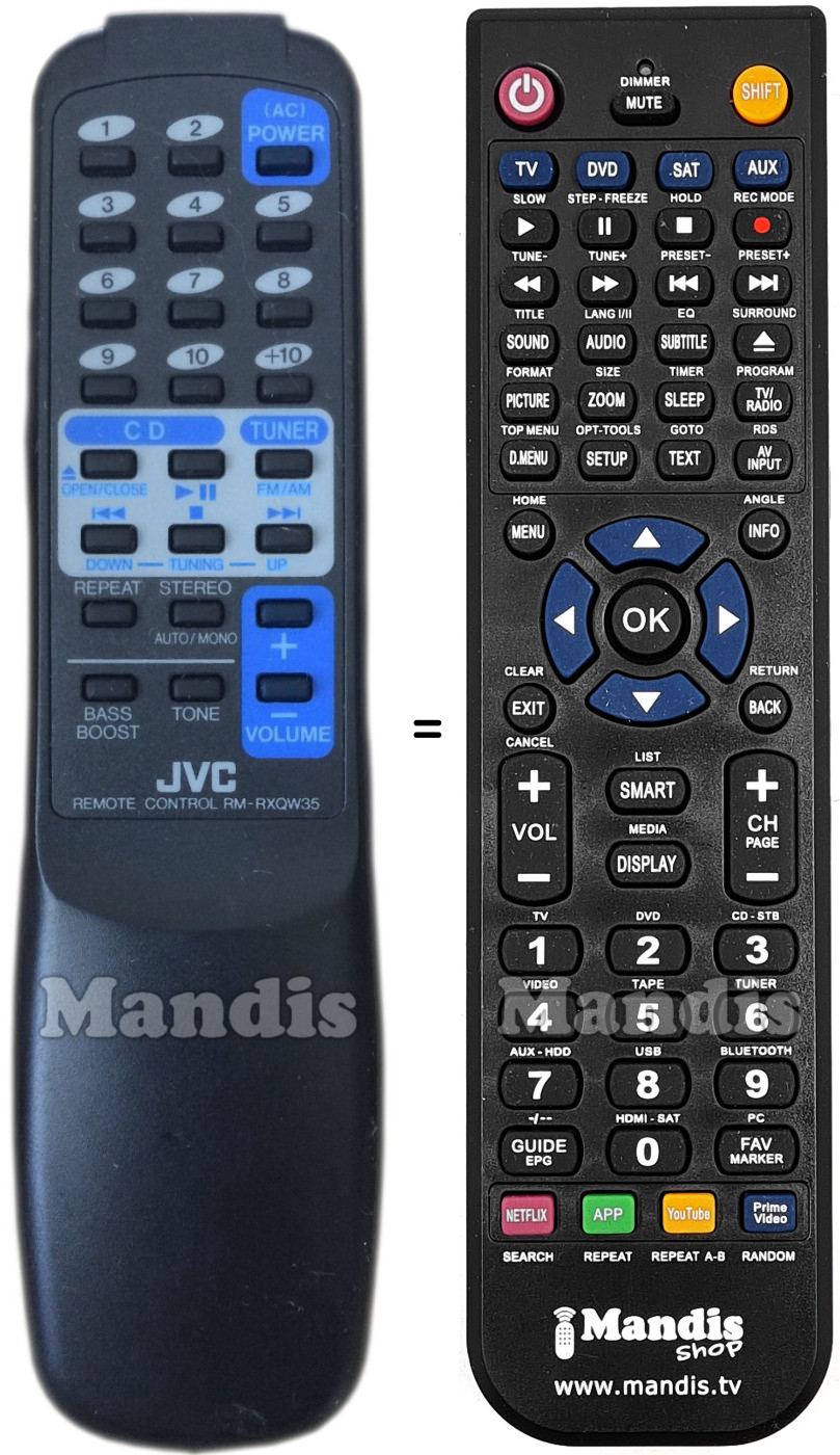 Home > Marken > Fernbedienungen JVC > Fernbedienung für JVC RM-RXQW35