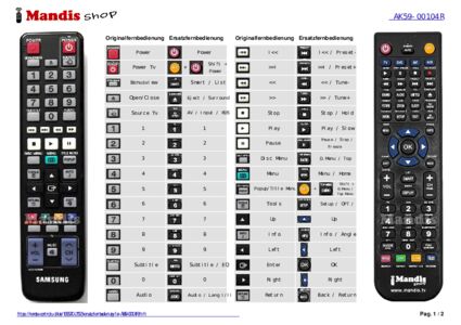 Ein Dokument ist enthalten, um die Verwendung der neuen Fernbedienung zu erleichtern, indem es die Tastenbelegung zeigt.