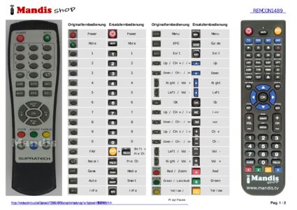 Ein Dokument ist enthalten, um die Verwendung der neuen Fernbedienung zu erleichtern, indem es die Tastenbelegung zeigt.
