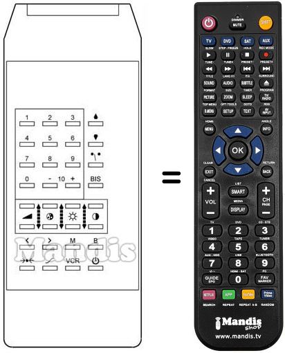Fernbedienung, die das Original und die Gesamtheit seiner Funktionen, vollständig ersetzt. Es handelt sich jedoch nicht um eine Universalfernbedienung sondern um eine Fernbedienung die das Original ersetzt. Sie erhalten eine nach Einlegen der Batterien sofort einsatzbereite Fernbedienung. Jegliches Programmieren entfällt. Wir geben umfassende Garantie dafür, dass diese Fernbedienung alle Funktionen der Originalfernbedienung erfüllt.