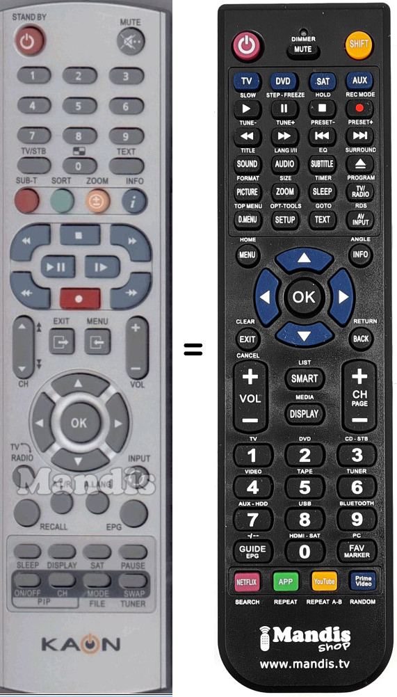 Es handelt sich jedoch nicht um eine Universalfernbedienung sondern um eine Fernbedienung die das Original ersetzt.