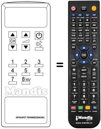 Fernbedienung, die das Original und die Gesamtheit seiner Funktionen, vollständig ersetzt. Es handelt sich jedoch nicht um eine Universalfernbedienung sondern um eine Fernbedienung die das Original ersetzt. Sie erhalten eine nach Einlegen der Batterien sofort einsatzbereite Fernbedienung. Jegliches Programmieren entfällt. Wir geben umfassende Garantie dafür, dass diese Fernbedienung alle Funktionen der Originalfernbedienung erfüllt.
