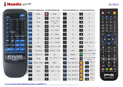 Diese Fernbedienung ersetzt Ihre RC-P0711 in vollem Umfang und bietet alle Funktionen des Originals.