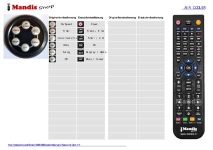 Ein Dokument ist enthalten, um die Verwendung der neuen Fernbedienung zu erleichtern, indem es die Tastenbelegung zeigt.
