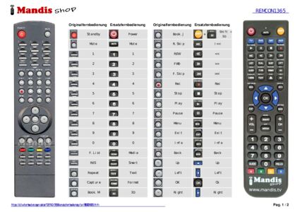 Im Folgenden zeigen wir Ihnen die Zuordnung jedes einzelnen Knopfes der Originalfernbedienung zu der Taste, die dieselbe Funktion auf der Ersatzfernbedienung ausführt. In einigen Fällen müssen Sie möglicherweise die UMSCHALT-Taste drücken, bevor Sie eine andere Taste drücken, um bestimmte Aktionen auszuführen. Diese zusätzlichen Funktionen werden oft wenig genutzt und dienen dazu, das Verständnis der Ersatzfernbedienung zu erleichtern oder weil die Originalfernbedienung mehr Tasten hat als das entsprechende Modell.