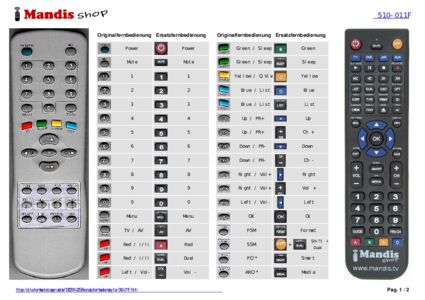 Diese Fernbedienung ersetzt Ihre 510-011F in vollem Umfang und bietet alle Funktionen des Originals.