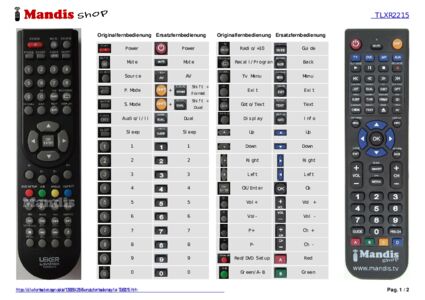 Diese Fernbedienung ersetzt Ihre TLXR2265 in vollem Umfang und bietet alle Funktionen des Originals.