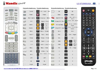 Ein Dokument ist enthalten, um die Verwendung der neuen Fernbedienung zu erleichtern, indem es die Tastenbelegung zeigt.