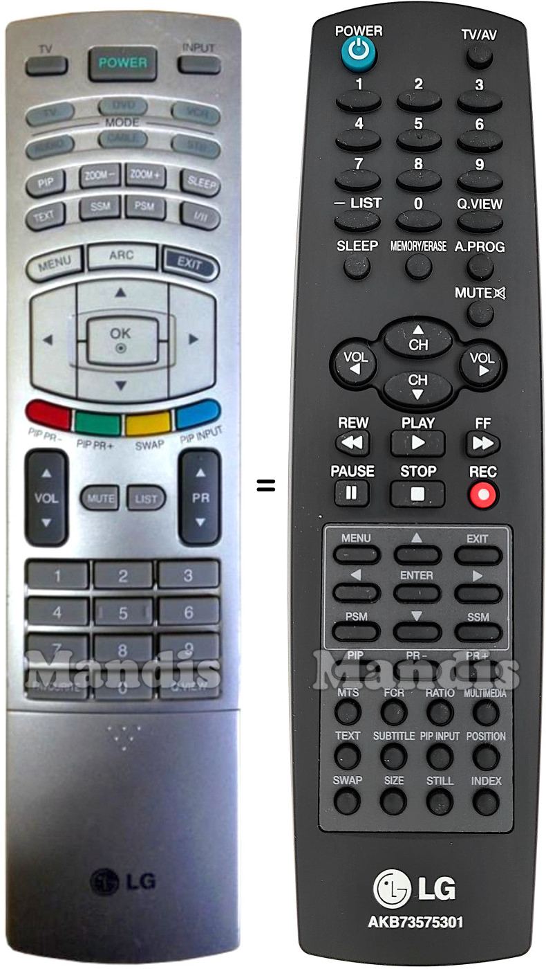 Gleichwertige Fernbedienungen, die über alle Funktionen der Fernbedienung LG AKB73575301 verfügen:
