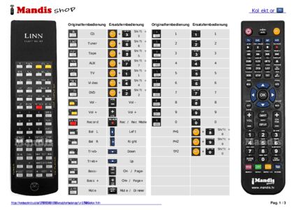 Ein Dokument ist enthalten, um die Verwendung der neuen Fernbedienung zu erleichtern, indem es die Tastenbelegung zeigt.