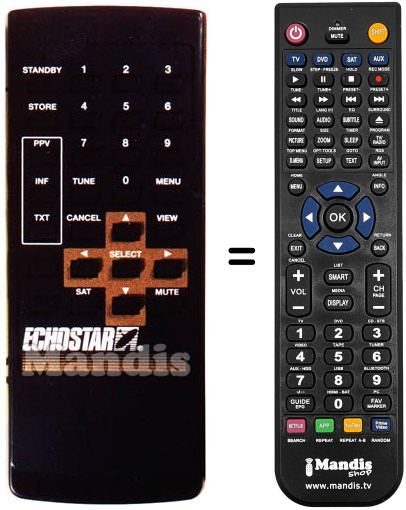 Fernbedienung, die das Original und die Gesamtheit seiner Funktionen, vollständig ersetzt. Es handelt sich jedoch nicht um eine Universalfernbedienung sondern um eine Fernbedienung die das Original ersetzt. Sie erhalten eine nach Einlegen der Batterien sofort einsatzbereite Fernbedienung. Jegliches Programmieren entfällt. Wir geben umfassende Garantie dafür, dass diese Fernbedienung alle Funktionen der Originalfernbedienung erfüllt.