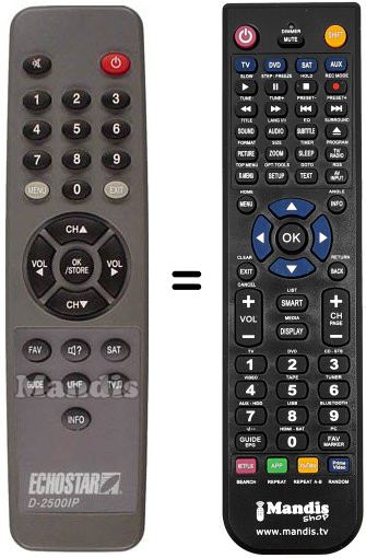 Fernbedienung, die das Original und die Gesamtheit seiner Funktionen, vollständig ersetzt. Es handelt sich jedoch nicht um eine Universalfernbedienung sondern um eine Fernbedienung die das Original ersetzt. Sie erhalten eine nach Einlegen der Batterien sofort einsatzbereite Fernbedienung. Jegliches Programmieren entfällt. Wir geben umfassende Garantie dafür, dass diese Fernbedienung alle Funktionen der Originalfernbedienung erfüllt.