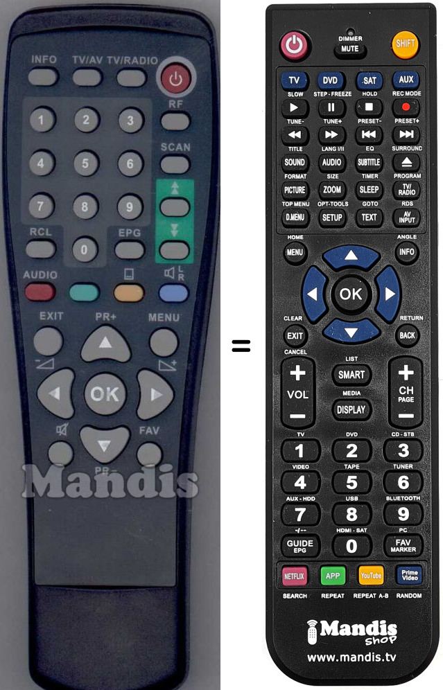Es handelt sich jedoch nicht um eine Universalfernbedienung sondern um eine Fernbedienung die das Original ersetzt.