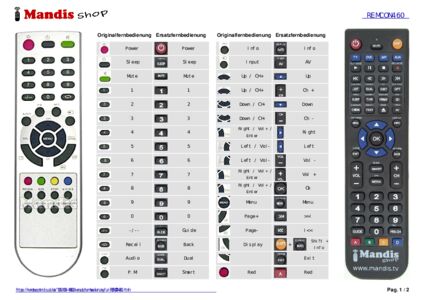 Ein Dokument ist enthalten, um die Verwendung der neuen Fernbedienung zu erleichtern, indem es die Tastenbelegung zeigt.