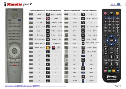 Im Folgenden zeigen wir Ihnen die Zuordnung jedes einzelnen Knopfes der Originalfernbedienung zu der Taste, die dieselbe Funktion auf der Ersatzfernbedienung ausführt. In einigen Fällen müssen Sie möglicherweise die UMSCHALT-Taste drücken, bevor Sie eine andere Taste drücken, um bestimmte Aktionen auszuführen. Diese zusätzlichen Funktionen werden oft wenig genutzt und dienen dazu, das Verständnis der Ersatzfernbedienung zu erleichtern oder weil die Originalfernbedienung mehr Tasten hat als das entsprechende Modell.