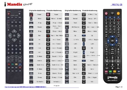 Ein Dokument ist enthalten, um die Verwendung der neuen Fernbedienung zu erleichtern, indem es die Tastenbelegung zeigt.