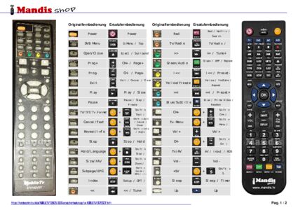 Ein Dokument ist enthalten, um die Verwendung der neuen Fernbedienung zu erleichtern, indem es die Tastenbelegung zeigt.