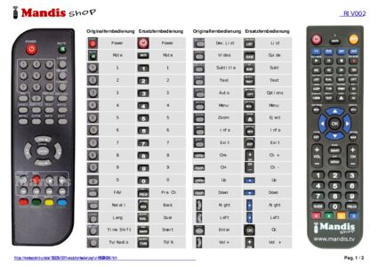 Ein Dokument ist enthalten, um die Verwendung der neuen Fernbedienung zu erleichtern, indem es die Tastenbelegung zeigt.