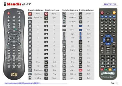 Ein Dokument ist enthalten, um die Verwendung der neuen Fernbedienung zu erleichtern, indem es die Tastenbelegung zeigt.
