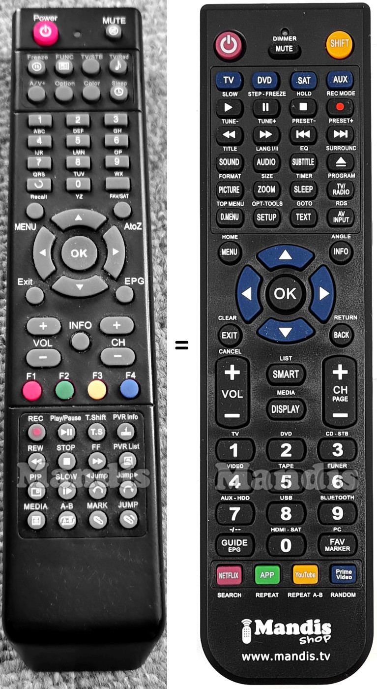 Wir bieten dir eine Ersatzfernbedienung an, die deine Originalfernbedienung in all ihren Funktionen vollständig ersetzt. Es handelt sich nicht um eine Universalfernbedienung, sondern um eine exakte Kopie mit identischen Tasten und Funktionen.