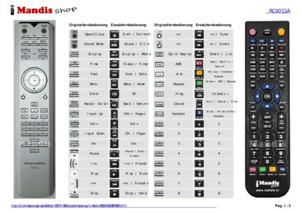 Ein Dokument ist enthalten, um die Verwendung der neuen Fernbedienung zu erleichtern, indem es die Tastenbelegung zeigt.
