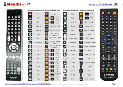 Im Folgenden zeigen wir Ihnen die Zuordnung jedes einzelnen Knopfes der Originalfernbedienung zu der Taste, die dieselbe Funktion auf der Ersatzfernbedienung ausführt. In einigen Fällen müssen Sie möglicherweise die UMSCHALT-Taste drücken, bevor Sie eine andere Taste drücken, um bestimmte Aktionen auszuführen. Diese zusätzlichen Funktionen werden oft wenig genutzt und dienen dazu, das Verständnis der Ersatzfernbedienung zu erleichtern oder weil die Originalfernbedienung mehr Tasten hat als das entsprechende Modell.
