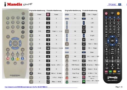 Ein Dokument ist enthalten, um die Verwendung der neuen Fernbedienung zu erleichtern, indem es die Tastenbelegung zeigt.