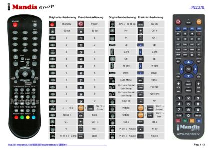 Ein Dokument ist enthalten, um die Verwendung der neuen Fernbedienung zu erleichtern, indem es die Tastenbelegung zeigt.