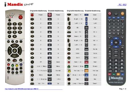 Ein Dokument ist enthalten, um die Verwendung der neuen Fernbedienung zu erleichtern, indem es die Tastenbelegung zeigt.