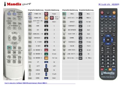 Die original Fernbedienung meines Panasonic Beamers war unreperabl defekt. Ein Ersatz war nirgends zu finden. Zum Glück entdeckte ich Mandis und bestellte die Ersatzfernbedienung nach der Originalnummer. Die nach kurzer Lieferzeit eingelangte Ersatzfernbedienung erfüllt alle, für den Betrieb wesentlichen Funktionen und es gibt dafür eine perfekte Anleitung.Das umständliche Einstellen von Schärfe, Zoom, Menue usw. direkt am Beamer geht jetzt wieder per Fernbedienung. Danke Mandis!!
