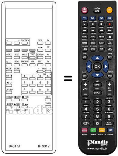 Fernbedienung, die das Original und die Gesamtheit seiner Funktionen, vollständig ersetzt.