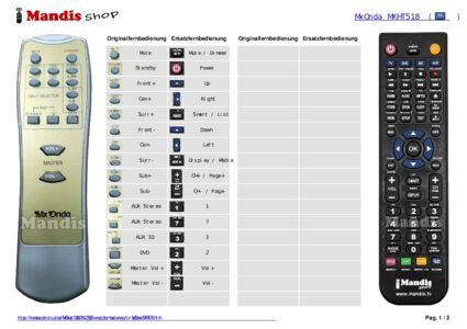 Diese Fernbedienung ersetzt Ihre MXHT518 in vollem Umfang und bietet alle Funktionen des Originals.
