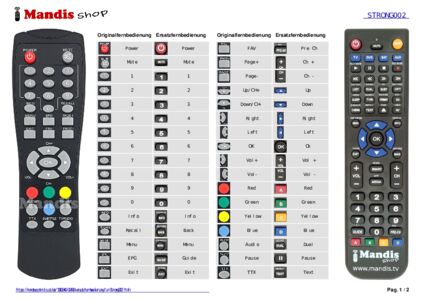Ein Dokument ist enthalten, um die Verwendung der neuen Fernbedienung zu erleichtern, indem es die Tastenbelegung zeigt.
