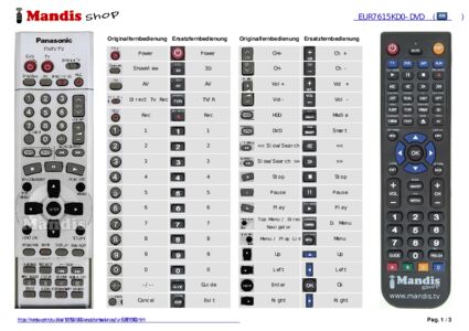 Ein Dokument ist enthalten, um die Verwendung der neuen Fernbedienung zu erleichtern, indem es die Tastenbelegung zeigt.