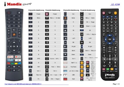 Diese Fernbedienung ersetzt Ihre DVB-T2S2C (LE-43N4) in vollem Umfang und bietet alle Funktionen des Originals.